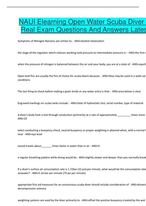 Read Naui Scuba Diver Test Answers Doc By Click Button. Naui Scuba Diver Test Answers it’s easy to recommend a new book category such as Novel, journal, comic, magazin, ect. You see it and you just know that the designer is also an author and understands the challenges involved with having a good book. You can easy klick for detailing book and you can read it online, even you can download it