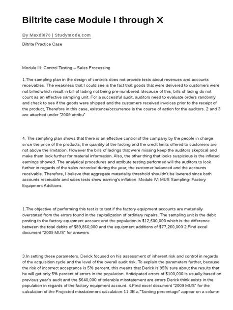 Read Solutions To Biltrite Bicycles Audit Case Modules Doc