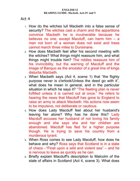 Download Macbeth Answers Act 4 Reader